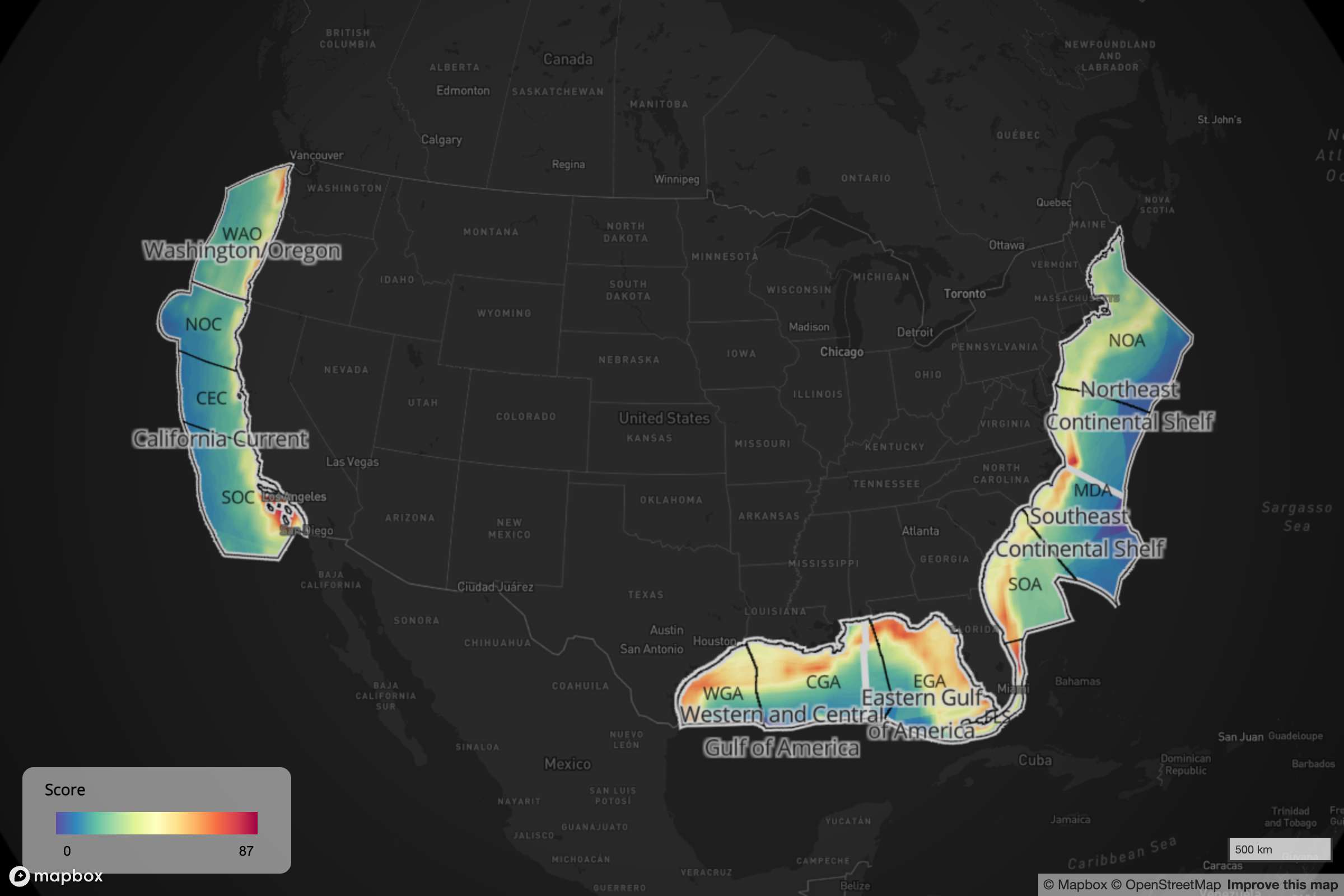 Ecoregional Context: Rescaling within ecoregions provides ecologically meaningful comparisons. A “moderate” sensitivity score in the species-rich Gulf of America represents fundamentally different ecological conditions than the same score in the Arctic, enabling region-appropriate decision-making.